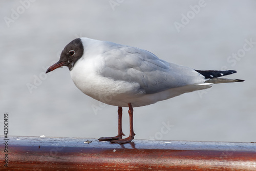 © philipbird123, Fototapeta premium Black-headed Gull on a Railing by the River Thames