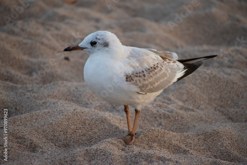 © Vira, Fototapeta premium Black-headed gull standing at the beach. Sunset seagull