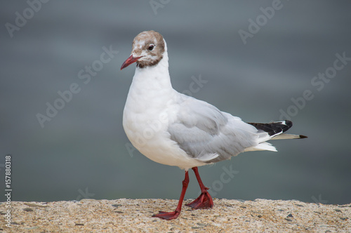 Obraz premium Black-headed gull standing on wall