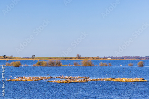 © Lars Johansson, Fototapeta premium Black-headed gulls nesting in small islands in a lake