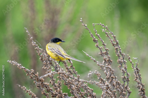 Naklejka premium Black headed yellow wagtail (motacilla flava) in natural habitat