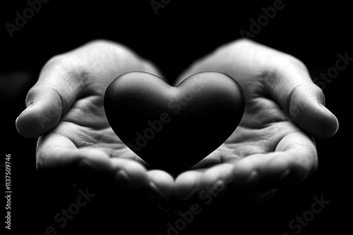 © amorn_m, Fototapeta premium Black Heart in Hands