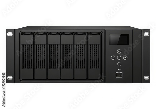 © png stock, Obraz premium Black high-capacity enterprise storage server with multiple drive bays and front panel controls