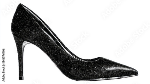 © wikkie, Obraz premium Black high heel shoe with glitter texture