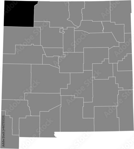 © Momcilo, Fototapeta premium Black highlighted location map of the San Juan County inside gray map of the Federal State of New Mexico, USA
