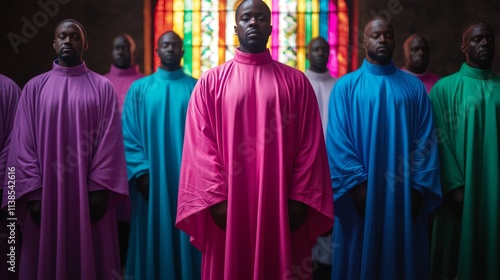 Naklejka premium Black history month, Diverse Choir Singers in Colorful Robes Church Music...