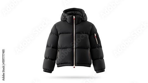 © PPS, Naklejka premium Black Hooded Puffer Jacket