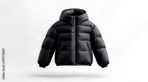© PPS, Naklejka premium Black Hooded Puffer Jacket