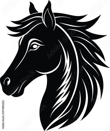 © Vector Art , Fototapeta premium Black horse head vector with flowing mane – elegant profile illustration