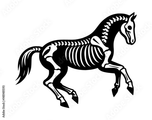 Obraz premium Black Horse Skeleton Vector Logo White Background