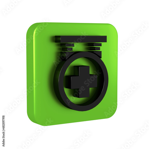 Obraz premium Black Hospital signboard icon isolated on transparent background. Green square button.