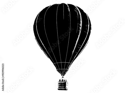 Obraz premium Black Hot Air Balloon with乘客 Silhouette Against Transparent Background