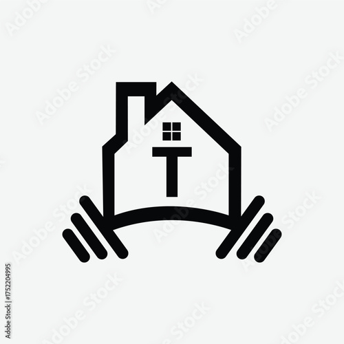 © Innaka, Obraz premium Black house icon with letter T and barbell on white background