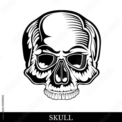 © Bohdan Petrushko, Fototapeta premium Black human skull front view without a lower jaw
