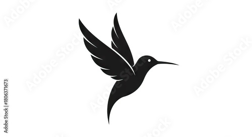 Obraz premium Black hummingbird silhouette in flight with wings spread against a white...