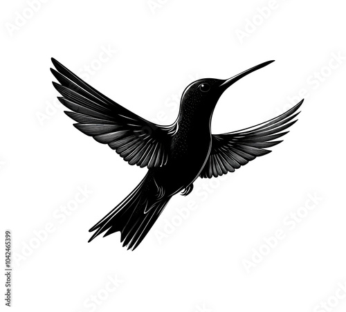 © Anuson, Naklejka premium black hummingbird silhouette on a white background