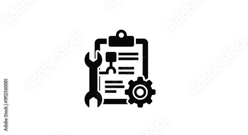 © RABEYA, Obraz premium Black icon of clipboard with tools wrench and gear silhouette