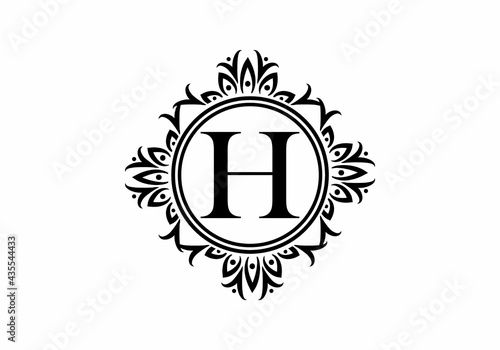 © Adipra, Naklejka premium Black initial H letter in classic frame