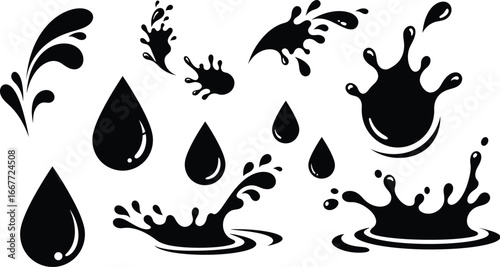 Naklejka premium Black Ink Splatter and Droplet Icons Set splash