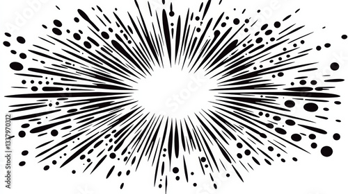 Obraz premium Black ink splatter explosion with dynamic lines and dots creating burst effect