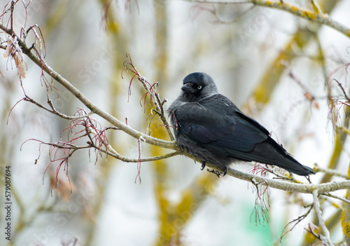 © Михаил Шорохов, Obraz premium black jackdaws on frosty tree branches