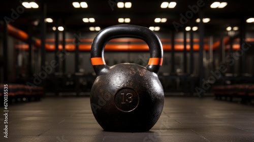 Fototapeta premium Black Kettlebell On Gym Floor Large, Background Image, Valentine Background...