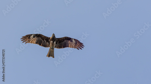 Fototapeta premium Black Kite eagle flying on the clear blue sky