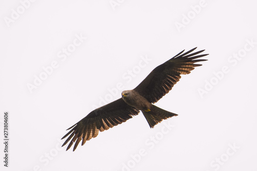 © Thorsten Spoerlein, Obraz premium Black kite flying in front of a blue sky
