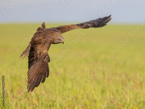 Obraz premium Black Kite flying on bright background