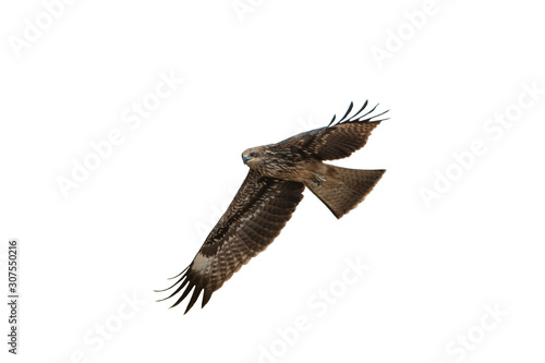 © chamnan phanthong, Fototapeta premium Black kite or Pariah kite flying isolated on white background