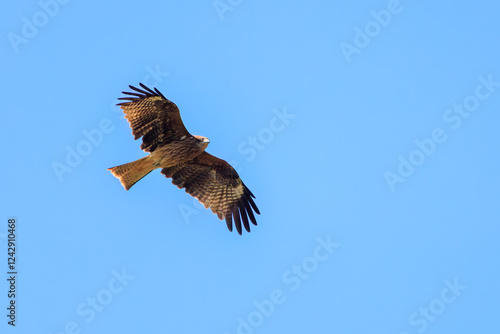 © d3_plus, Obraz premium 飛翔する美しいトビ(タカ科) 英名学名:Black Kites (Milvus migrans) 栃木県栃木市渡良瀬遊水地-2024