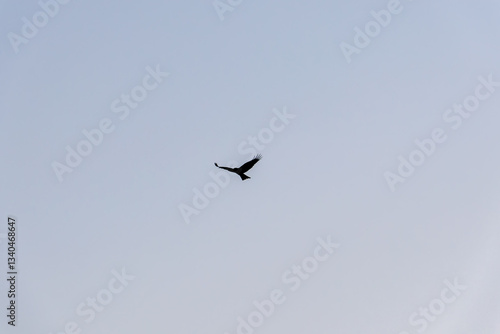 Obraz premium 飛翔して海面の餌を狩る美しいトビ(タカ科) 英名学名:Black Kites (Milvus migrans)...