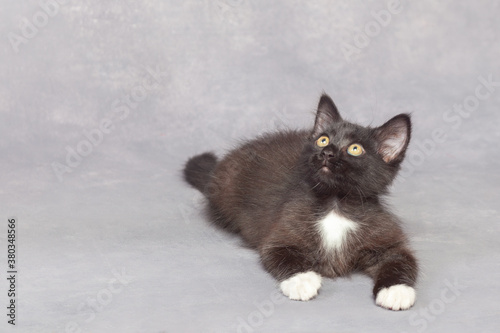 Fototapeta premium Black kitten on a gray background
