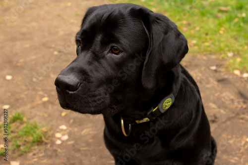 Fototapeta premium Black labrador retriever dog outside