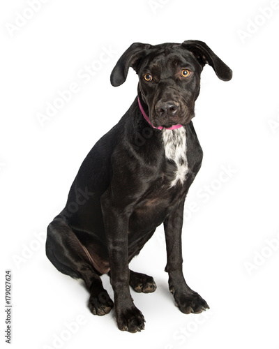 Fototapeta premium Black Labrador Retriever Mix Dog on White