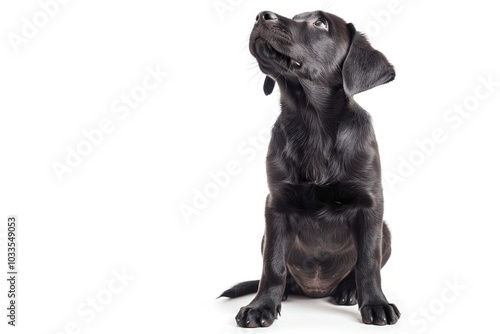 © Rawpixel.com, Fototapeta premium Black Labrador sits and listens with his head tilted straight animal mammal pet.