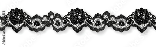 © Safdar, Obraz premium Black lace trim on a white background, flat lay