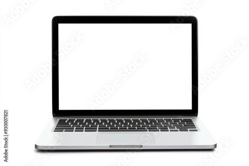 © 为轩 张, Fototapeta premium Black laptop with blank screen on white background, ideal for design mockups, featuring ultra-realistic view of silver MacBook Pro.