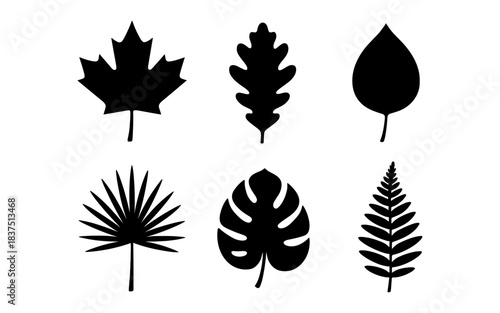 Obraz premium Black leaf silhouettes of various plants on a white background