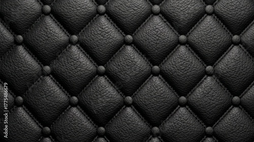 © panumas, Naklejka premium Black leather background with a diamond pattern is shown. The image has a sleek and sophisticated look
