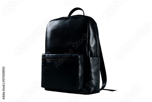 © moly, Fototapeta premium Black leather backpack isolated on black background