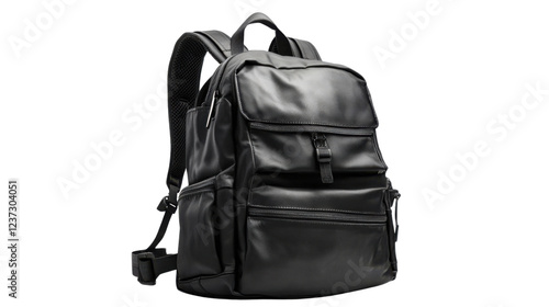© Komora, Naklejka premium Black leather backpack isolated on transparent background