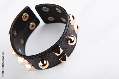 Obraz premium Black leather bracelet studio white background