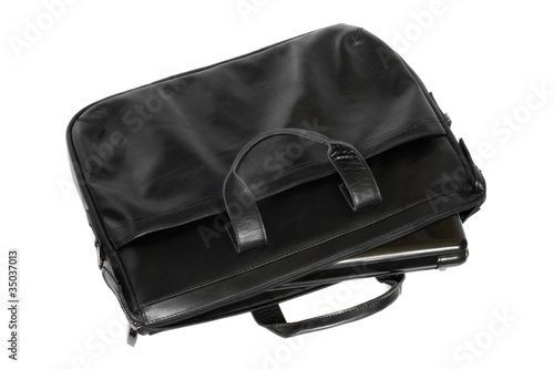 Fototapeta premium Black leather computer bag with laptop
