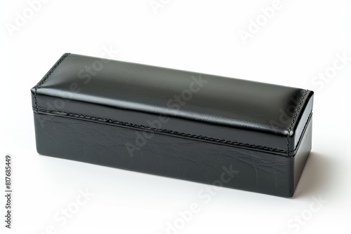 © VolumeThings, Fototapeta premium Black leather glasses case isolated on white background