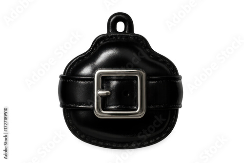 Obraz premium Black leather hip flask with metal buckle on transparent background