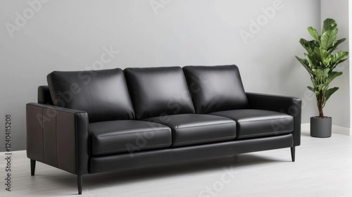 Fototapeta premium Black Leather Sofa in Modern Living Room