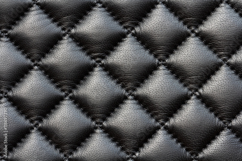© aninna, Fototapeta premium black leather texture, sewn stitches, macro