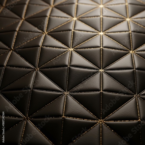 Fototapeta premium Black Leather Texture with Gold Geometric Stitching