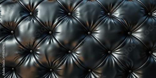 © Fitriaa, Fototapeta premium Black Leather Upholstery with Buttons